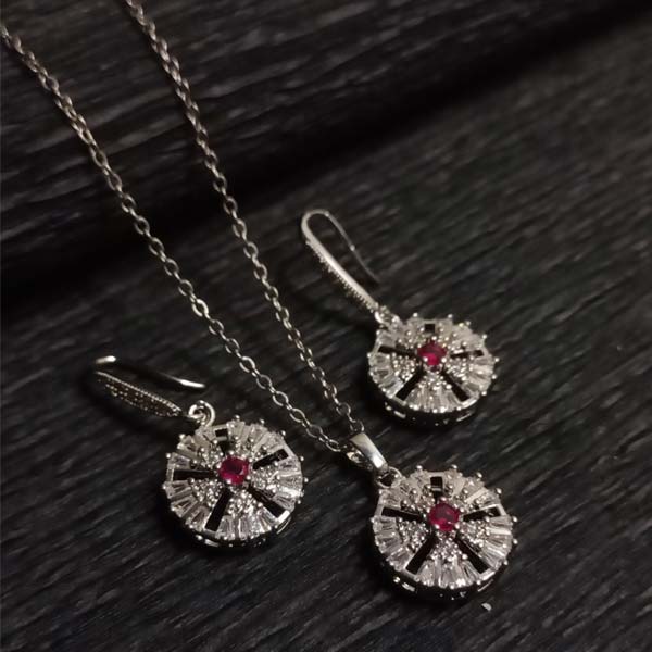 Ruby-Colour Earring & Necklace Set